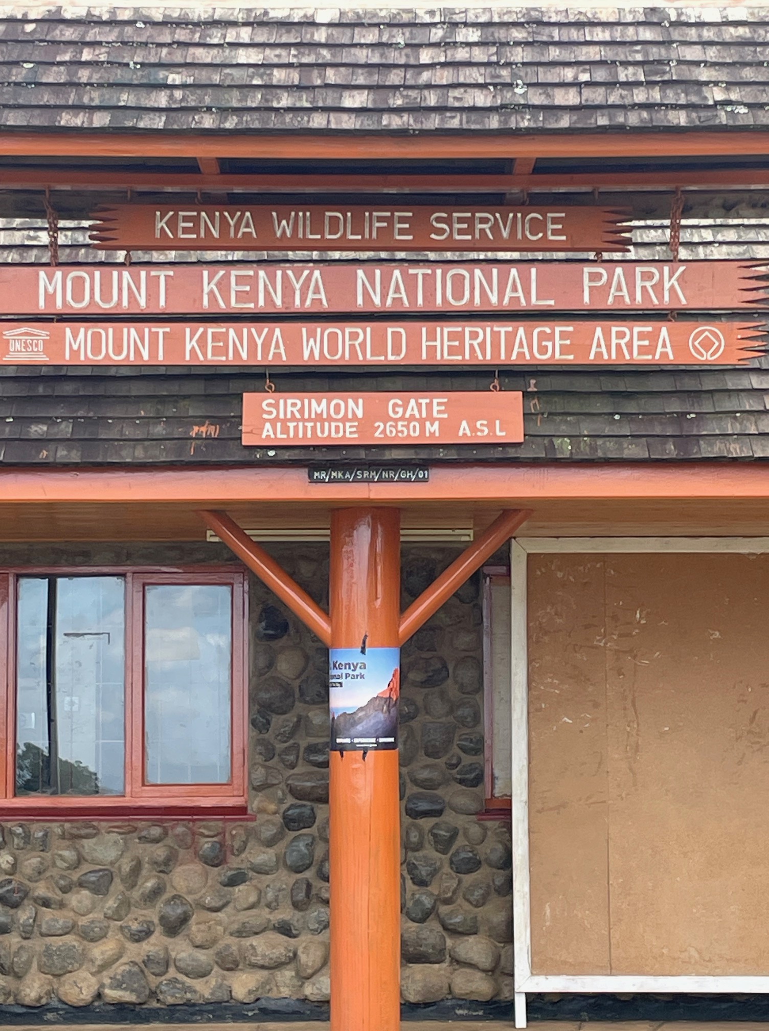 Mit dem Shuttleservice wurden wir zwei und Charles von Tilman Tours in Nairobi abgeholt und über Nanyuki zum Sirimon Gate gebracht. Nanyuki ist eine Stadt auf einem Hochland und liegt auf 1622m. Eine Besonderheit dieser Stadt ist dass sie genau am Äquator liegt. Ansonsten scheint es der Bevölkerung hier relativ gut zu gehen. Durch die Nähe zum Mount Kenia Massiv gibt es hier viel Süsswasser, es ähnelt hier sehr der Seiser Alm, es gibt viele Kühe und Schafe. Man sieht die blauweissen Milchtransporter wie in Südtirol. Gemüse und Obst wird auch mit schon fortschrittlichen Methoden angebaut. Am Gate erreichte uns auch unser Begleiterteam, je ein Träger pro Person, ein Koch und der Tuorenguide Bernard ein junger Bursche 21 Jahre alt. Nach dem Check in wurden uns alle vorgstellt und es gab ein köstliches Mittagessen. Es war halb zwölf, aber wir sind seit mehr als 24 Stunden unterwegs , um halb fünf in Nairobi gelandet, dann um halb sechs abgeholt worden und vier einhalb Stunden bis hier her gefahren. Beide waren wir schon etwas ermüdet. Nach dem Essen wurde umgepackt und den Trägern das restliche Gepäck mitgegeben. Wir wollten den Trägern fairerweise nicht zuviel mitgeben, da wir die Gegend auch das Wetter hier nicht genau kannten ausserdem mussten sie ja den Proviant und sämtliches Kochgeschirr usw. alles hoch und wieder heruntertragen dachten wir. Es war nebelig und bewölkt, man wartete auf den täglichen Regenguss, der in der kleinen Regenzeit jeden Nachmittag hier kommt. Heute sollte es so gegen halbeins regnen. Also starteten wir mit eher schweren Rucksäcken. Von der Landschaft konnte man wegen dem Nebel kaum etwas sehen. Wir gingen acht km und achthundert Höhenmeter auf einer asphaltierten Strasse. Das Einzige was uns etwas ermunterte waren einige Affen die wir begegneten. Kurz nach dem Start wurden wir von einem Auto überholt. Zu unserem Staunen waren es unser Betreuerteam, das uns freundlich zuwinkte. Wenn wir das gewusst hätten, hätten wir Ihnen schon mehr Gepäck mit gegeben. Nach etwas mehr als zwei Stunden Wanderung gegen halb drei , waren wir am Old Moses Camp auf 3384m angekommen. Diese Schutzhütte besteht aus zwei langgezogenen Holzhütten mit Bretterwänden und grünem Blechdach. In einem befinden sich zwei Schlafräume mit zirka 10 Stockbetten, die Toiletten mit fliesendem Wasser und zwei Duschen und Waschbecken, die Räume für die Träger und Küche. In der zweiten Hütte ist der Speisesaal, mit Betonboden und Fenster mit Talblick, Tischen und Plastikstühlen für ungefähr 50 Personen, sehr düster feucht und kalt. Wir bekamen einen Schlafsaal für uns alleine, im anderen waren auch nur noch vier Personen, ein Österreichisches Paar die vom der Gpifeltour erwartet wurden und zwei Spanierinnen die erst spät vom Sirimon Gate angekommen sind. Inzwischen wurde es total nebelig und leichtes Nieseln setzte ein. Beide waren wir von der Anreise müde, machten uns etwas frisch und versuchten in den Betten etwas aus zu ruhen und uns aufzuwärmen. Die Temepratur war leicht über dem Nullpunkt. So um halb fünf kurz vor der Dämmerung ist das österreichische Paar in unserem Alter vom Shiptons Camp angekommen. Sie sahen total erschöpft und ausgelaugt aus. Nachdem Sie sich erholt und geduscht haben, fragten wir sie, über die Besteigung und das Shipton Camp. Das obere Camp ist noch primitiver und weniger gepflegt als dieses hier. „Gestern hat es den ganzen Tag geregnet, wir haben im Schlafsack gewartet, heute morgen sind wir aufgestiegen aber oben war viel Neuschnee und wir mussten spuren und Treppen in das Eis schlagen, dann der Rückweg durch das Moor, sehr anstrengend. Am Gipfel war es ein tolles Erlebnis, aber die Hütte katastrophal.“ Das Paar war aus Nauders in Tirol und er war bei der Bergrettung, also jemand der sich am Berg auskennt, dachten wir. Das war für uns keine Aufmunterung, auf keinen Fall ist uns von der Erzählung warm geworden, wie wir gehofft haben. Ich bekam kurz Gänsehaut und dachte mir, wenn alles durchnässt ist, wie am Meru dann gehen wir diesmal nicht weiter. Schon um halb sechs gab es das Abendesssen, das wir eher mit gemischten Gefühlen zu uns nahmen. Auch die zwei Spanierinnen neben uns machten nicht gerade einen beruhigenden Eindruck. Ich sagte zu Marion: „wir brauchen mal wieder ein paar Stunden ruhigen Schlaf und vielleicht scheint morgen die Sonne, so wie es der Wetterblog den ich mir auf mein Handy geladen habe vorraussagt, dann sieht alles wieder anders aus.“ Nach dem Essen gab es ein kurzes Briefing mit Bernard, viel über Wetterprognosen wollte er nicht verraten oder eher wusste er nicht so bescheid. „Es regnet jetzt jeden Tag am fühen Nachmittag ,hies es einfach“. Da es schon eine Weile dunkel war, machten wir es uns in unseren Stockbetten so gut wie möglich gemütlich. Von oben( Mit Mütze) bis unten( warme Socken) gekleidet packten wir uns in den Schlafsäcken ein. Leider war es aber im Camp alles andere als ruhig. Die Träger und Guides unterhielten sich noch eine Weile, leider hörte man durch die dünnen Holzbretter alles. Dann als endlich Ruhe war begann eine der Spanierinnen im Schlafraum nebenan ihre Sachen zu sortieren. Wir waren Wand an Wand, aber es kam mir vor als wie wenn sie die Reisversschlüsse unserer Rucksäcke auf und zu machen würde, dann raschelte sie mit einer dünnen Plastiktüte, wenn sie den Kopf drehte ging auch der Schein der Stirnlampe mit, das schimmerte durch die Spalten der Bretterwand, einfach nervig, wenn man schlafen möchte. Dann merkte ich, dass Marion schlief, das beruhigte mich, irgendwann verzählte ich mich bei den Schafen und als ich gegen 3 Uhr Nachts aufwachte ging es mir schon wesentlich besser, es fühlte sich warm an. Marion schlief wie ein Murmeltier und hatte sich schon die Socken ausgezogen. Ich machte eine Runde auf die Toilette und ging kurz ins Freie, der Himmel war wolkenlos, voller Sterne, in der Ferne erspähte ich den Gipfel des Mount Kenia, alles f