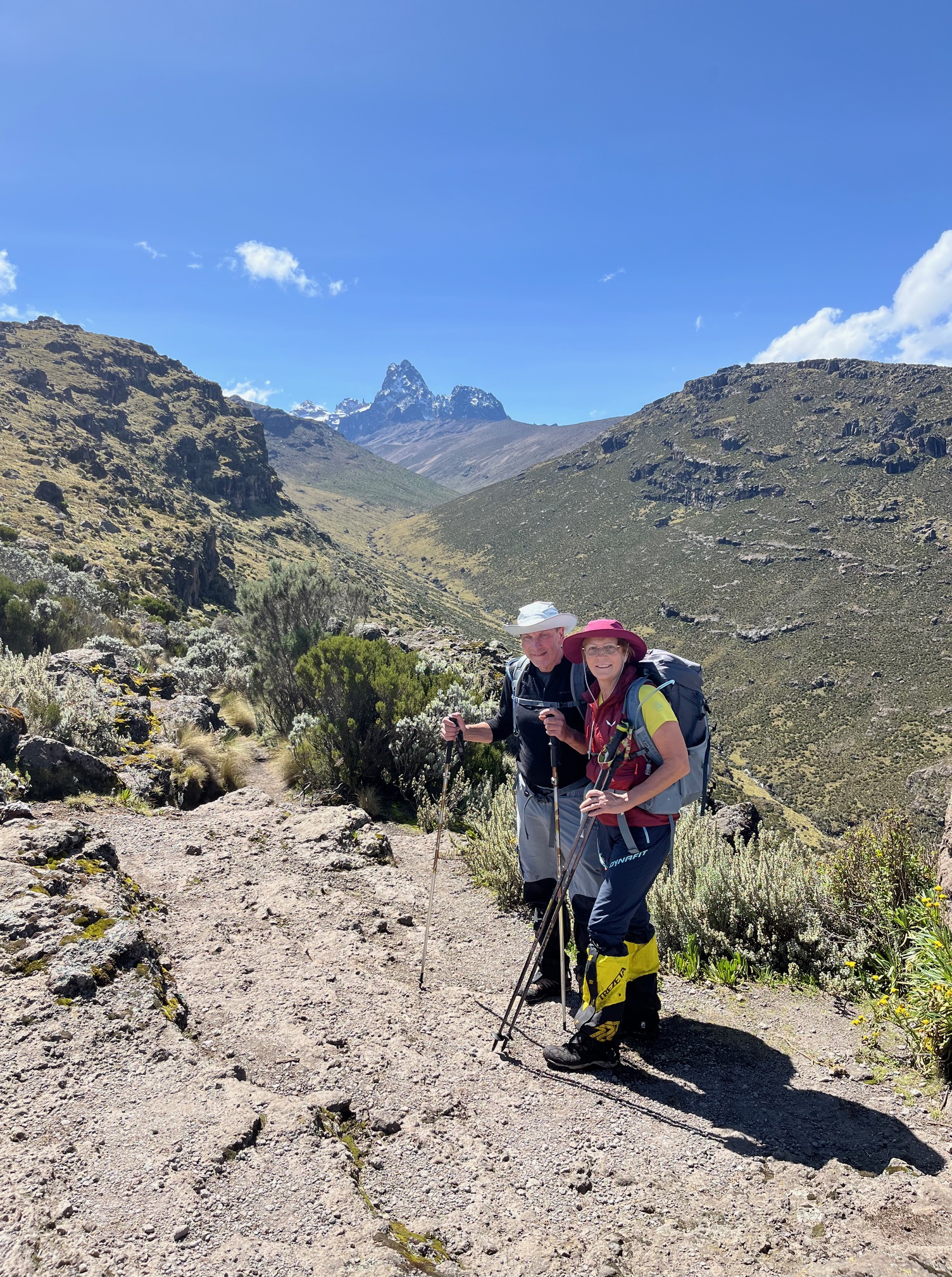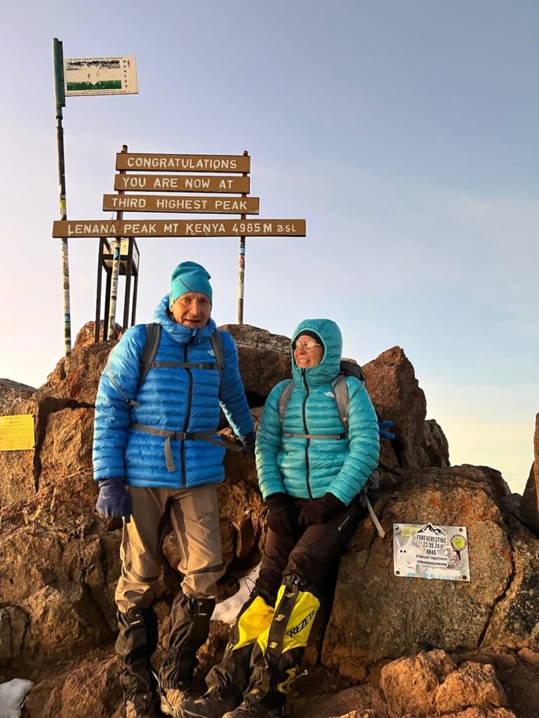 Wir planten schon nach Ostern 2025 unsere Besteigung im November. Flüge und die Guides haben wir alles selbst gebucht, als Sahnehäubchen dann anschliessend noch drei Tage Strand in Diani Beach bei Mombasa am indischen Ozean. Da wir beim Mount Meru gute Erfahrungen mit einheimischen Anbietern gemacht haben,buchten wir auch diesmal direkt bei Tilman Safari eine Agentur in Nanyuki einer Stadt nahe am Mount Kenia, die auf 1947m Meereshöhe liegt und Startpunkt für die Mount Kenia Trekkings ist. Sofort nach der Buchung machten wir uns daran unsere körperliche Fitness einzustellen. Es wurden viele Touren gemacht, die ähnlichen Charakter, wie die Etappen zum Mount Kenia haben. Hier gibt es aber halt nur Berge maximal bis zu 3300m, die wir ohne alpin zu klettern erreichen konnten. Der Ortler,unser höchster Berg hier ist 3905m hoch, aber technisch viel schwieriger als der Mount Kenia. Unsere Kondition am Berg und auch für lange Tracks war dann schon ab Ende August optimal, nur die Unbekannte, die Höhe über viertausend Meter, blieb unsere Sorge. Beim Aufstieg zum Meru ging es der Marion nicht besonders gut, somit konnte sie das Erlebnis nicht so geniessen. Das wollten wir diesmal vermeiden. Daher stellten wir auch unsere Ernährung so ein , dass unser Körper mehr von diesen roten Blutkörperchen produziert, mit Ingwer, schwarzen Knoblauch und Ähnlichem. Unser Leben ging aber immer gleich weiter, wir sind ja keine Fanaten. Die Wanderungen die wir als Training machten waren alle wunderschön und es gab nie den Moment, wo wir uns überanstrengten . Die längste “ Trainingsstrecke“ war die Besteigung des Weisshorns von Auer aus, in einem Stück: Über 2000 Höhenmeter bei 17 Km konstante Steigung. Diese Tour wollten wir schon lange mal machen und wir waren so stolz darauf, dass wir das so ohne große Ermüdung und Muskelkater überstanden haben.