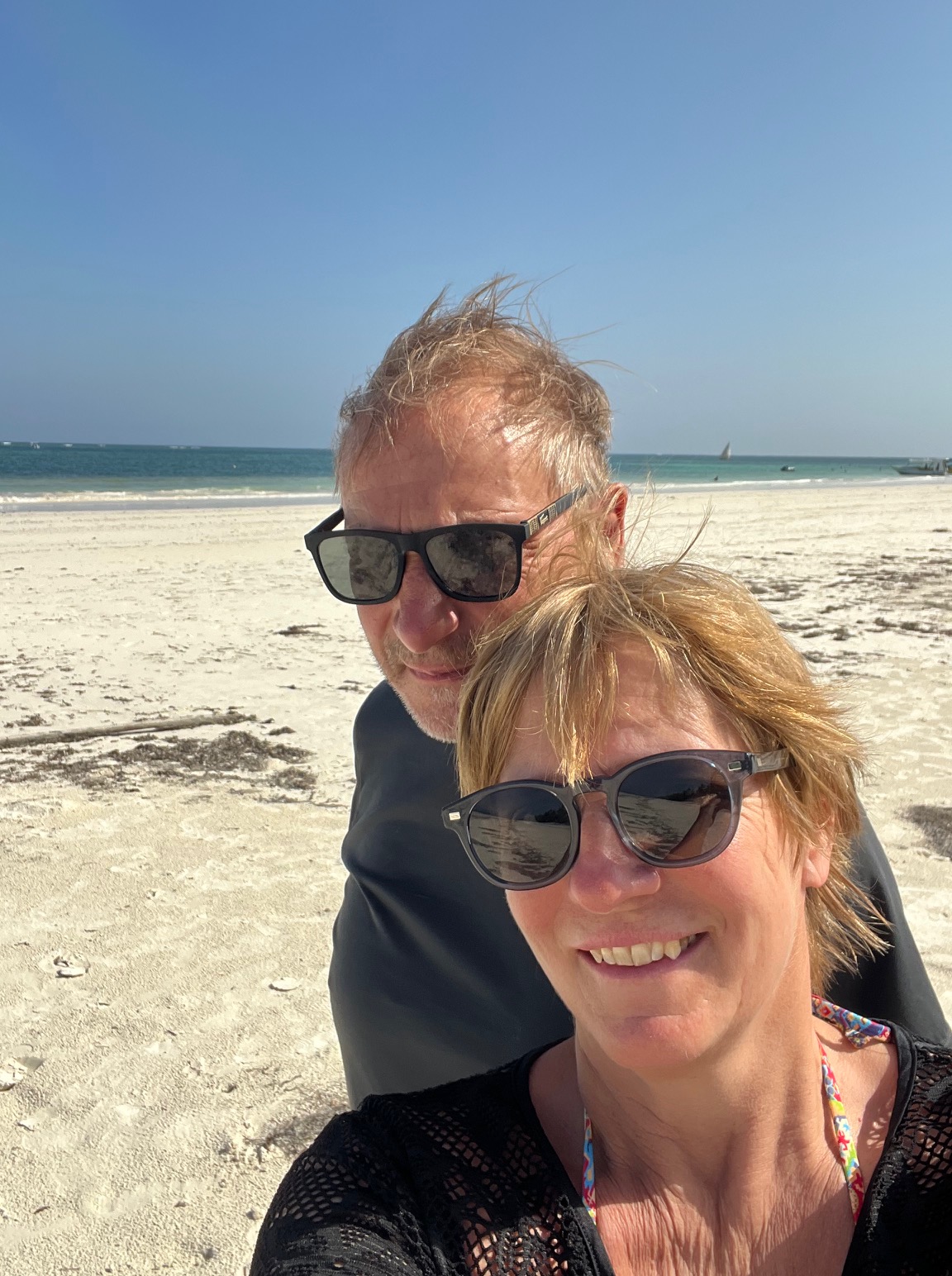 Das Old Moses Camp erreichtet wir um viertel nach ein Uhr, die letzten hundert Meter im Laufschritt, um zu zeigen wie gut wir uns noch fühlten. Dann ging alles schnell, das Gepäck im Auto des Teams verladen. Leider konnten wir uns kaum waschen, da die Waschräume abgesperrt waren. Mit einem Schlauch erledigten wir das am Brunnen beim Parkplatz. Dann alle acht Personen samt Gepäck und Ausrüstung in das Auto zum Sirimon Gate und dann nach Nanyuki, wor uns Charles der Fahrer mit unserem Koffer erwartete. Wir mussten zur Polizeistation, da unserem Fahrer sein Wagen wegen Falschparken sequestriert wurde! Charles Mouriuki von Tilmann Safaris organisierte einen Leihwagen mit dem wir dann nach Nairobi in das Luxuhotel Argyle gerbracht wurden. Wir hatten schon etwas bedenken, weil wir noch in Wandermontur vom Mount Kenia ankamen. Doch wir wurden äusserst professionell empfangen. Der Page brachte uns samt Rücksäcken und Gepäck auf unser Zimmer. Nachdem wir uns ausgiebig geduscht hatten, nahmen wir im Hotel ein köstliches Dinner ein. Nach einer durchgeschlafenen Nacht sind wir dann nach Diani Beach ( 1Stunde) geflogen und haben dort 3 wunderbare Tage am indischen Ozean verbracht.