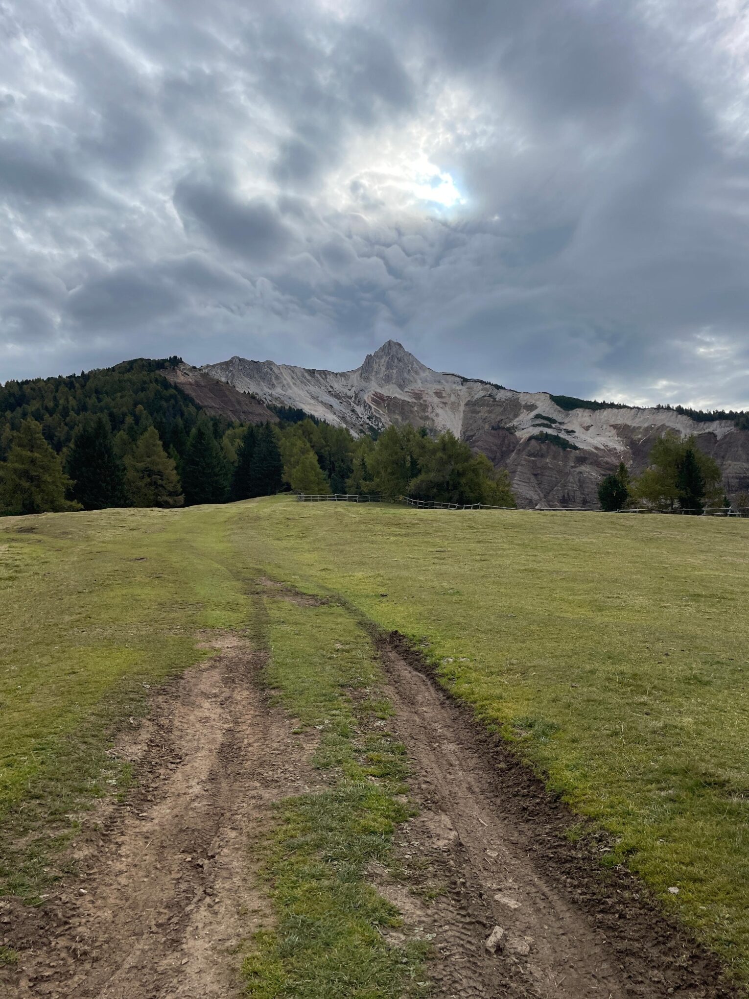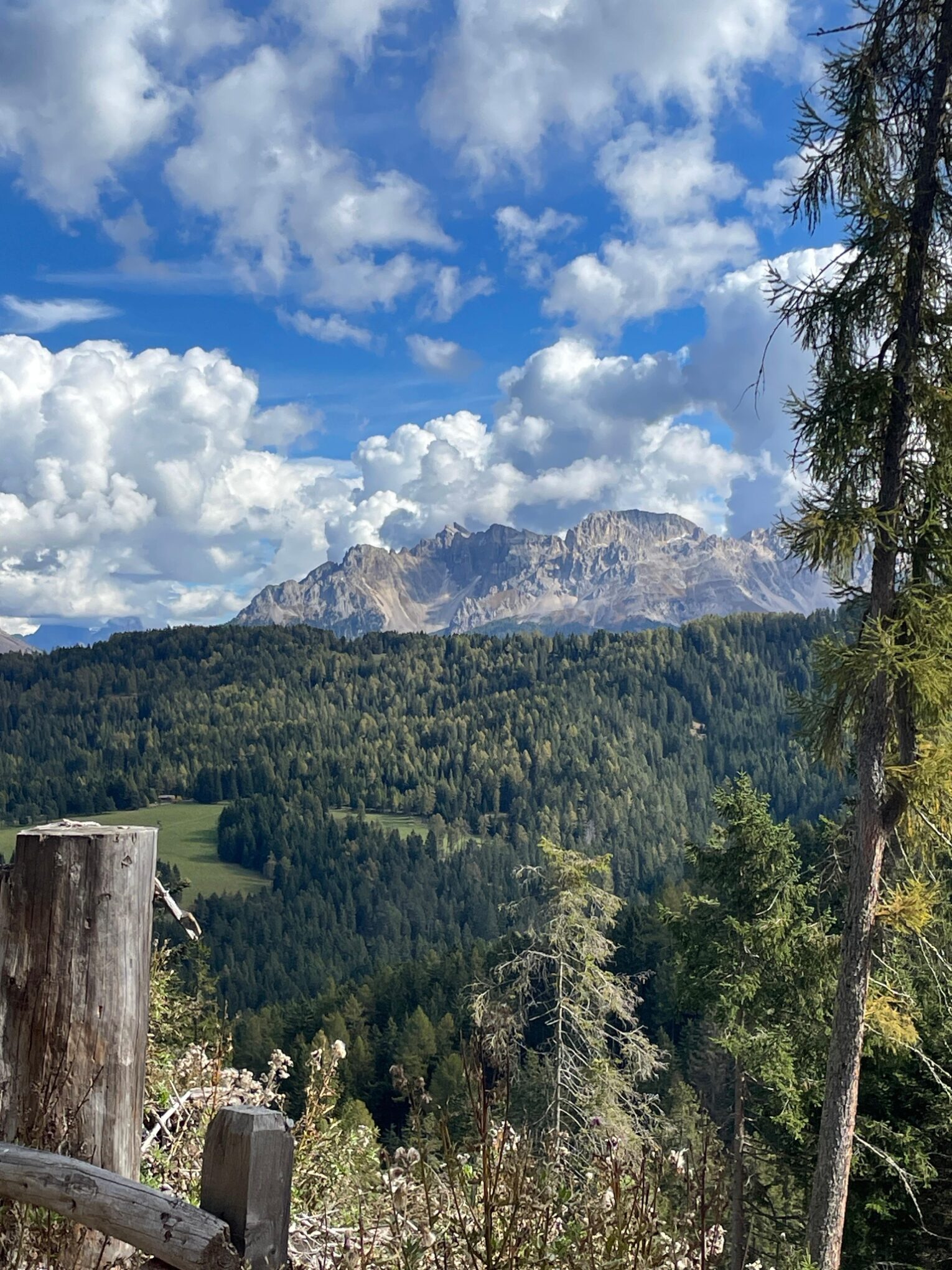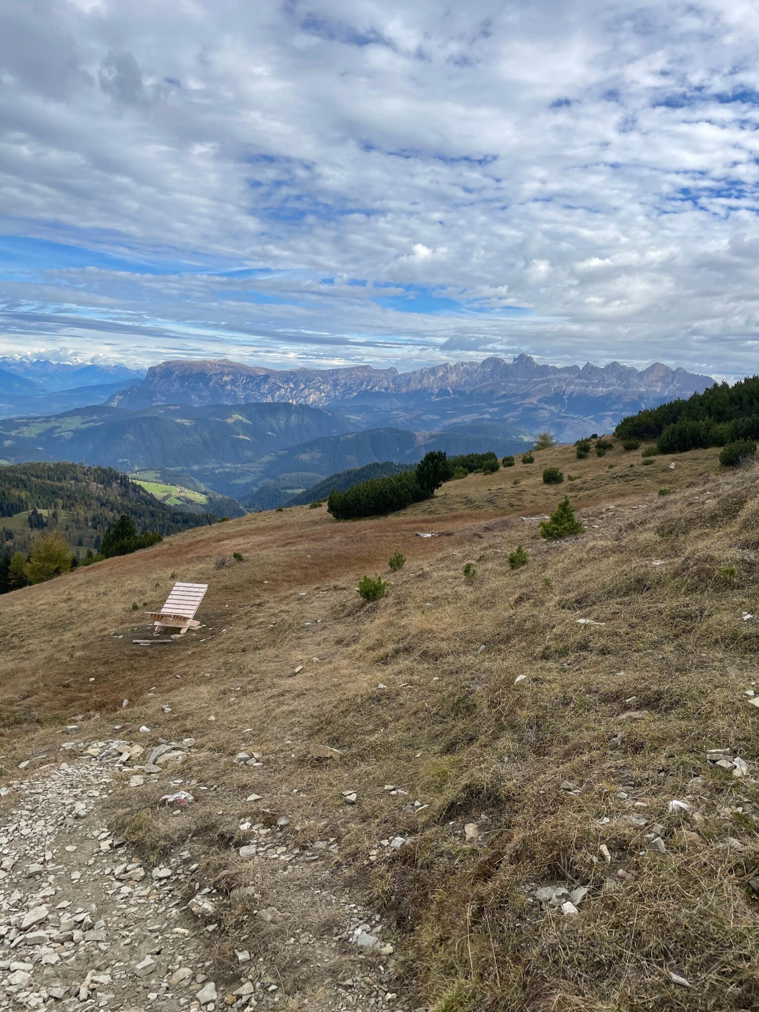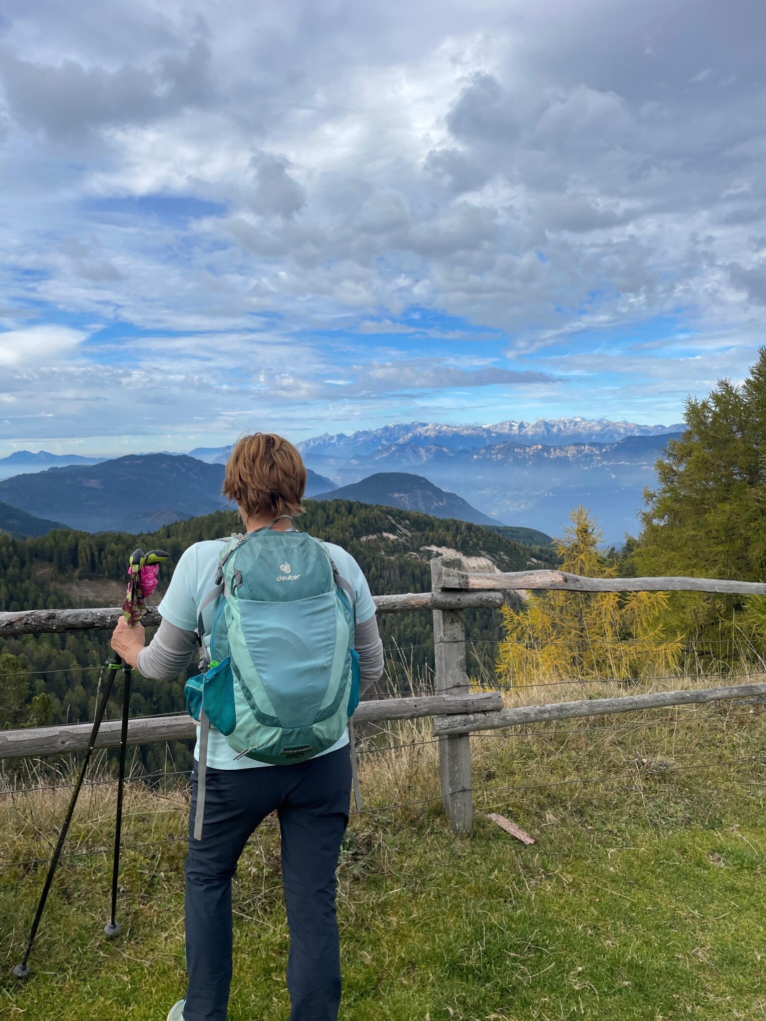Dann geht es „nur“ noch mal 800 Höhenmeter bergab bis nach Maria Weissenstein. Das machen wir nach dem ersten gefährlichen Teil ( Langsam) und dem Kösertalsattel über den wieder ganz schön angelegten E5 Fernwanderweg. Hier geniessen wir noch den direkten Blick hinüber zum Schlern, Rosengarten und Latemargebirge, die heute sehr schön unter der Wolkendecke leuchten. Im Restaurant vom Kloster Weissenstein lassen wir uns dann mit einer warmen Mahlzeit verwöhnen. Mit dem Linienbus geht es zurück nach Auer. Um zehn vor drei sind wir dann in Auer am Hauptplatz.